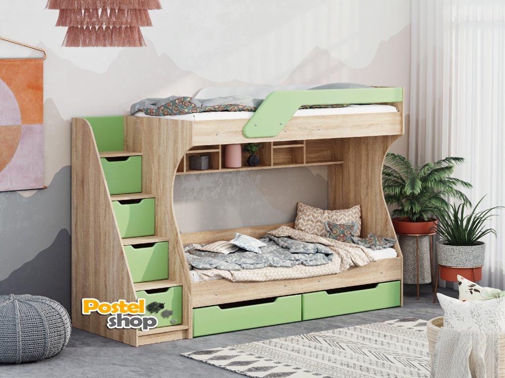 Dětská patrová postel je ideální volbou pro každou rodinu, která hledá praktické a funkční řešení pro úsporu prostoru v dětském pokoji. Postel je navržena tak, aby nabídla nejen komfortní spánek, ale také dostatek úložného prostoru. S vestavěnými schody s dvířky, zásuvkami a policemi, které jsou skvělé pro ukládání hraček, oblečení nebo dalších věcí, je tato postel ideální pro organizaci pokoje. Je určena pro matraci o rozměru 190x80 cm.