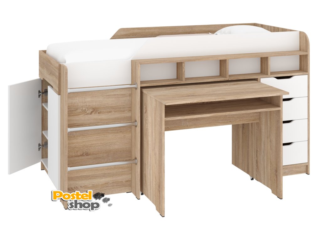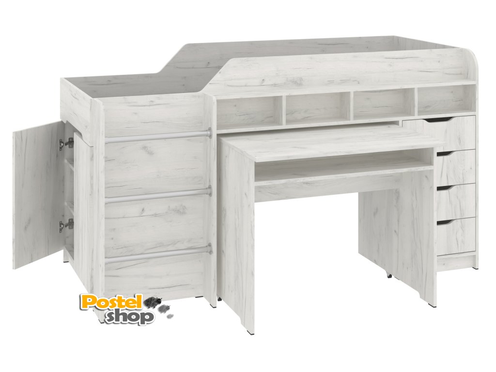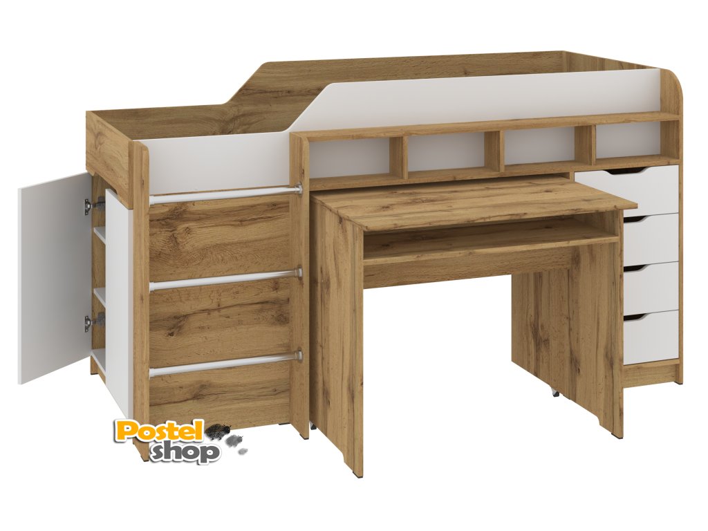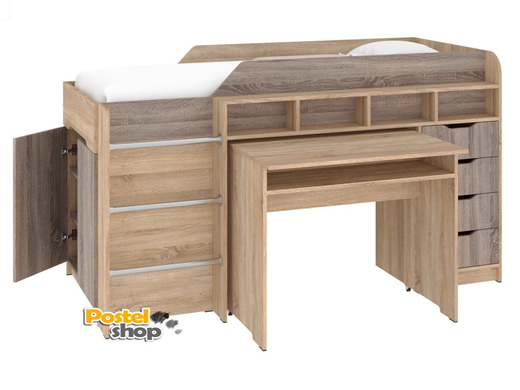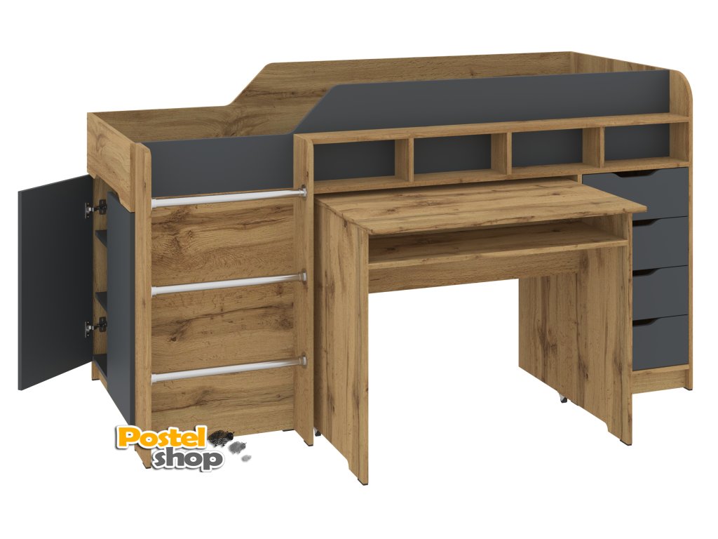Hledáte praktickou a stylovou postel pro vaše dítě? Dětská zvýšená postel je ideálním řešením pro menší pokoje, kde je potřeba maximalizovat prostor. Tato patrová postel nabízí nejen kvalitní místo na spaní, ale i dostatek úložného prostoru a funkční pracovní plochu.