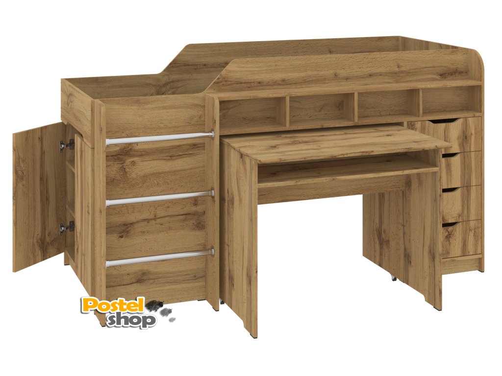 Dětská zvýšená postel190x70 s výsuvným psacím stolem, komodou a skříňkou – Ideální volba pro každé dítě!