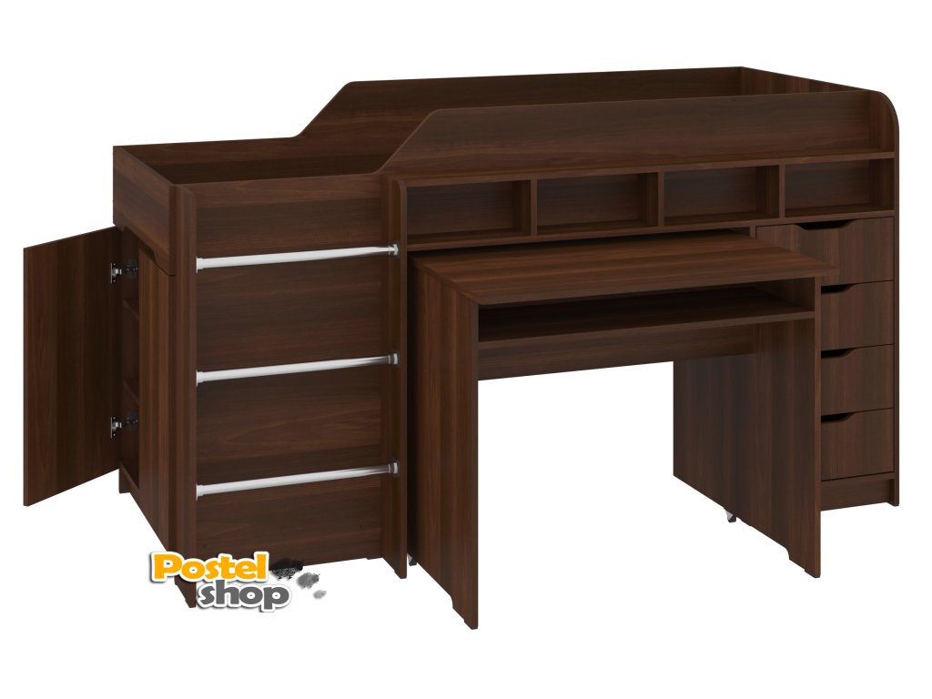 - Efektivní využití prostoru – postel, stůl i úložné prostory v jednom.