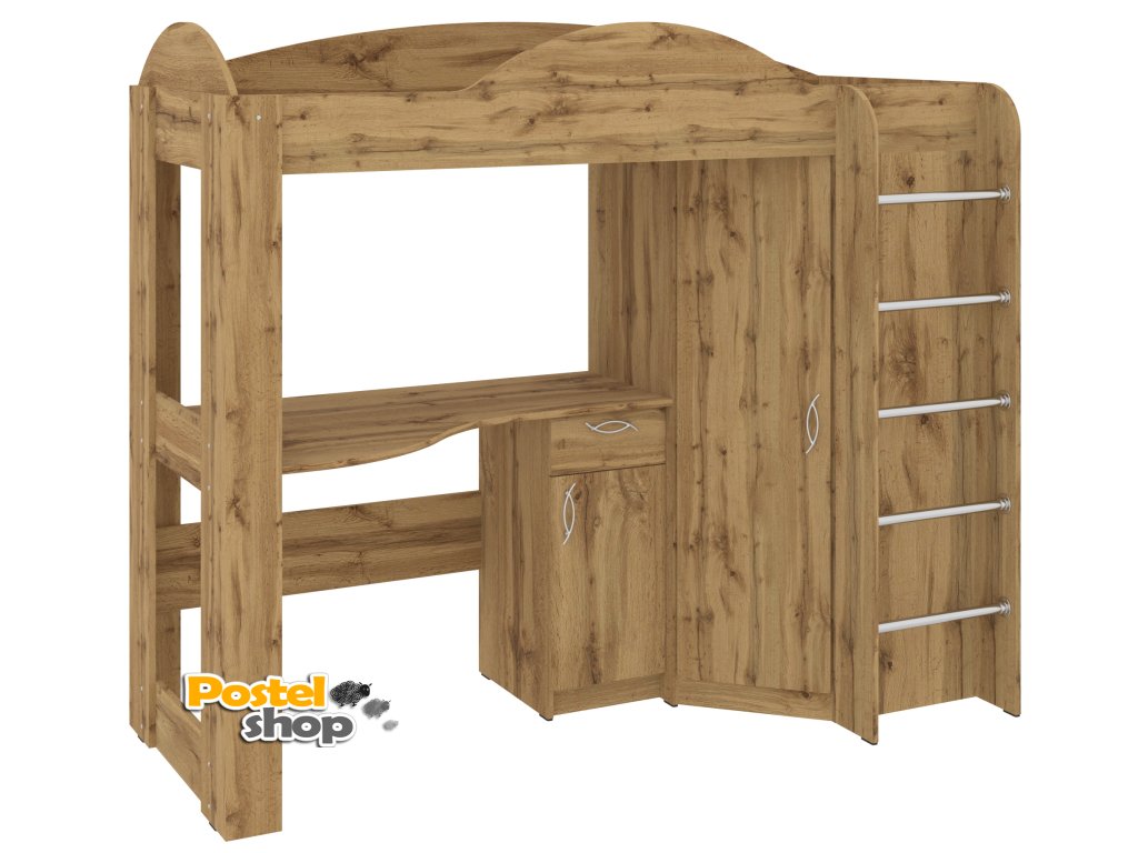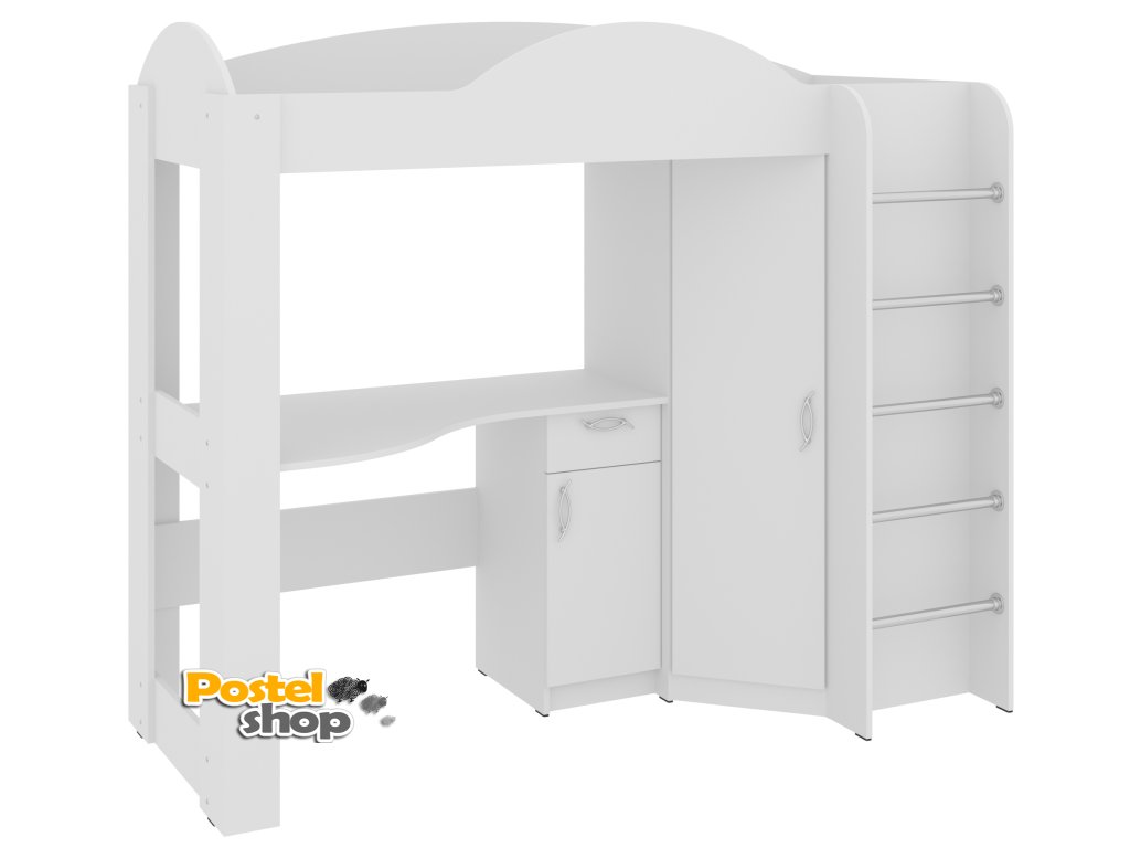 Patrová postel 190x70 cm s rohovou šatní skříní a psacím stolem – Praktické řešení pro dětský pokoj!