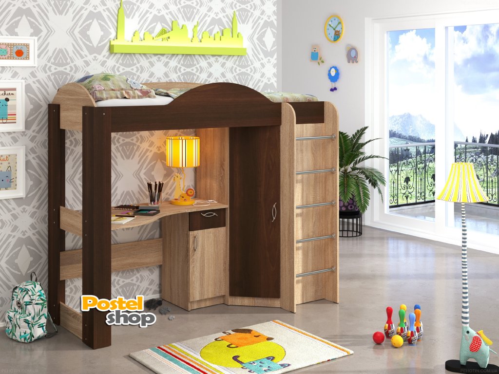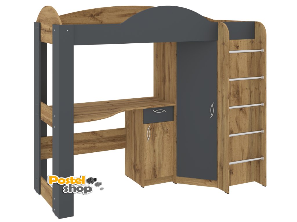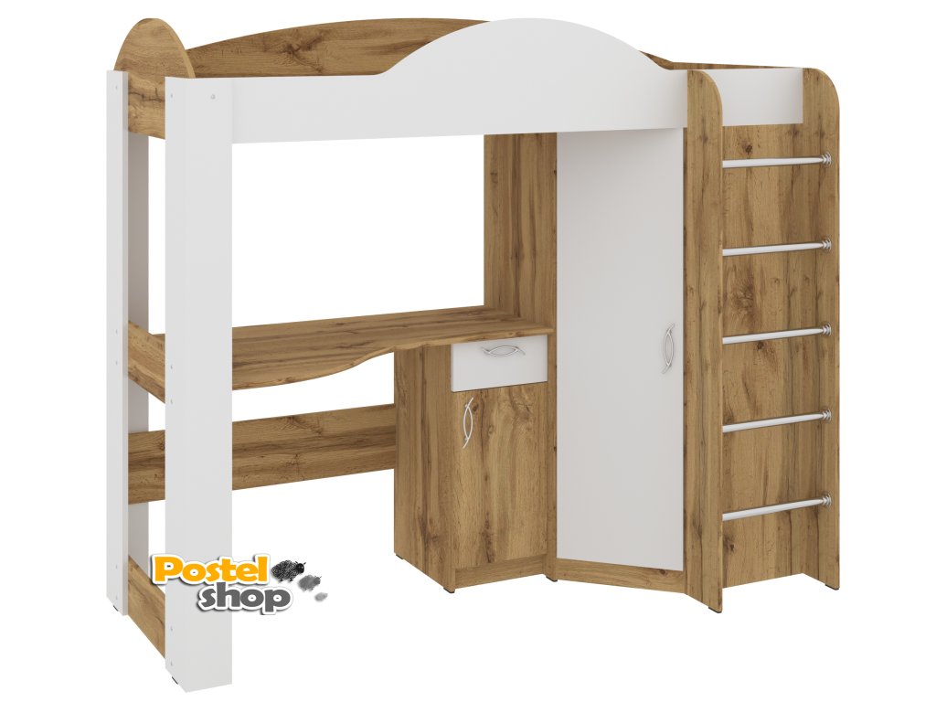 Hledáte ideální postel pro vaše dítě, která nabízí nejen kvalitní spánek, ale i praktický úložný prostor a pracovní zónu? Patrová postel ORBITA je perfektním řešením pro menší pokoje, kde každý centimetr prostoru má svůj význam. Díky kombinaci postele, šatní skříně a psacího stolu získáte vše, co vaše dítě potřebuje, v jednom elegantním a funkčním designu.
