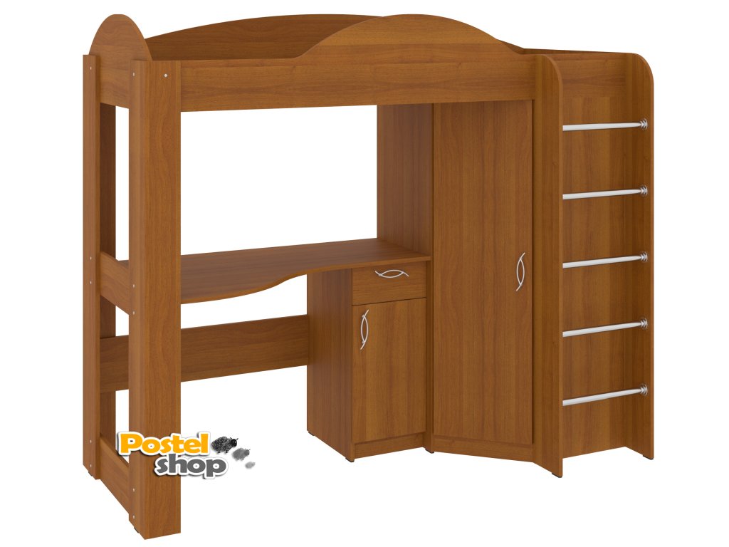 Patrová postel lamino Orion 70 x 190 cm, s psacím stolem a šatní skříní