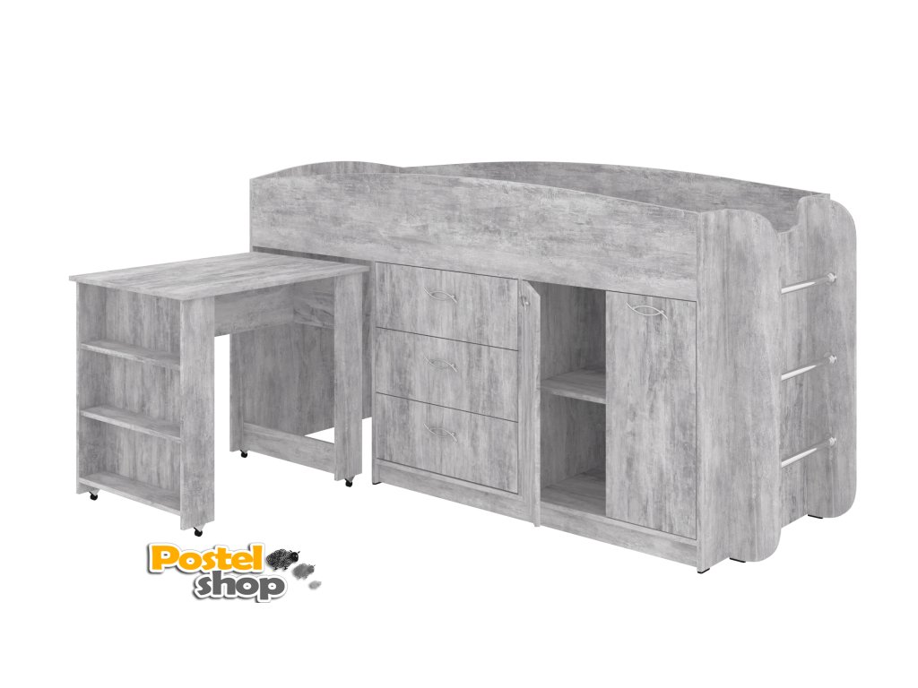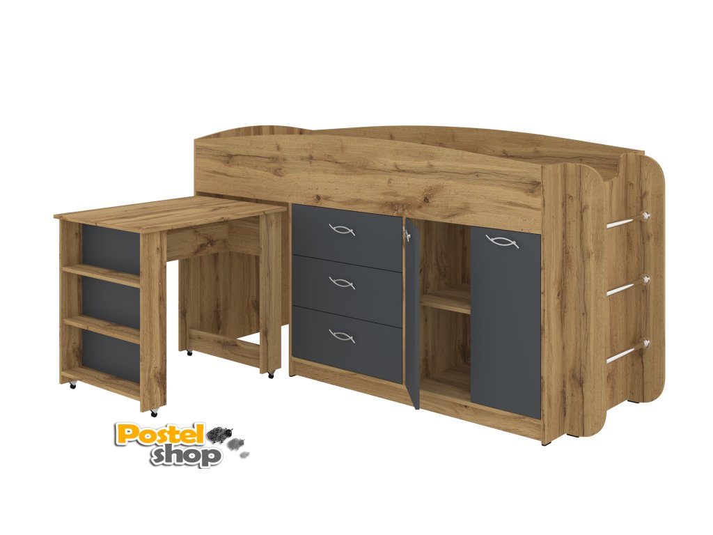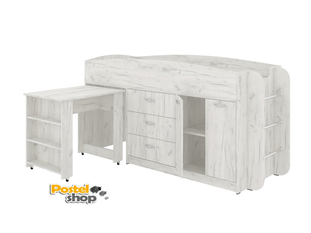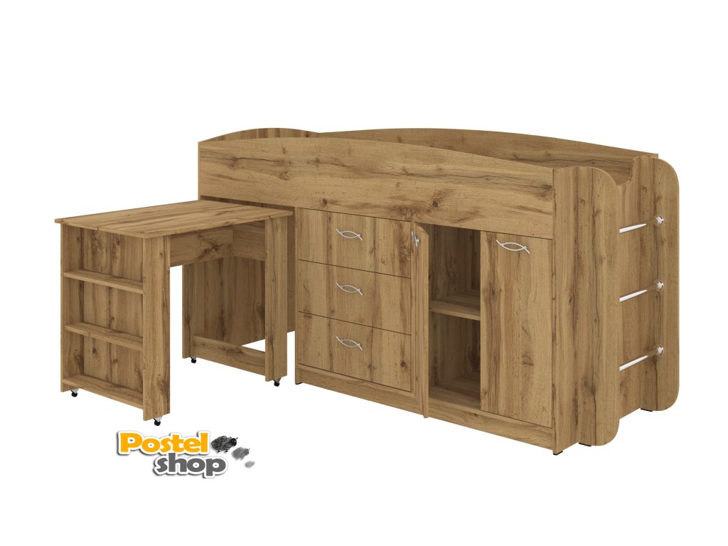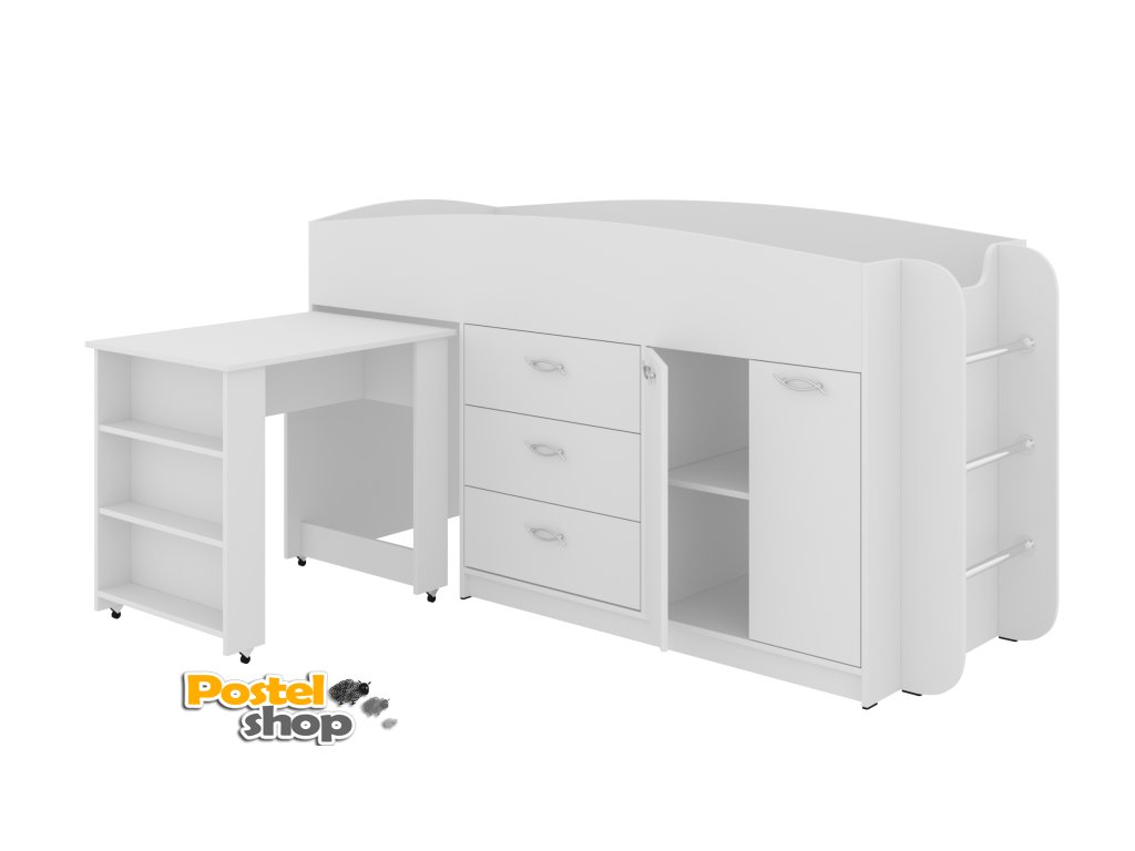 Patrová postel lamino Pola 80 x 190 cm, s psacím stolem a komodou