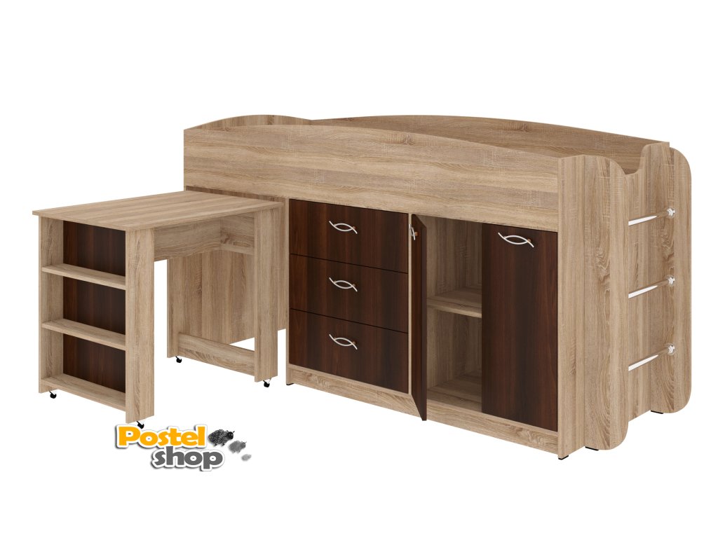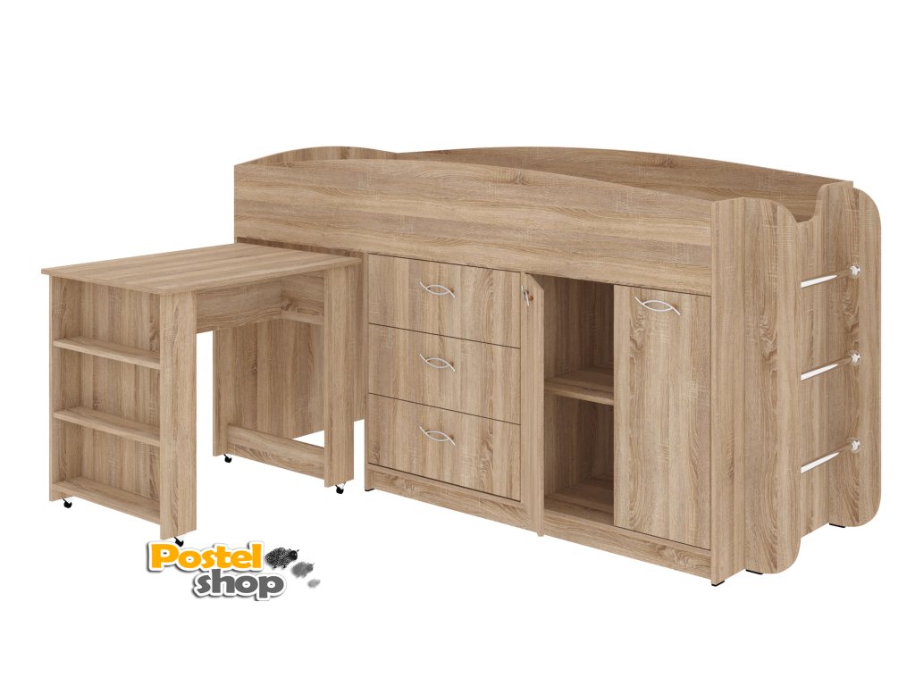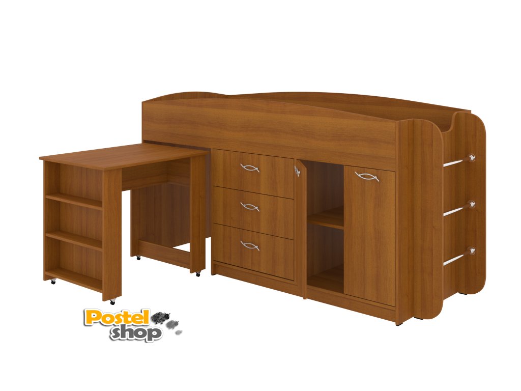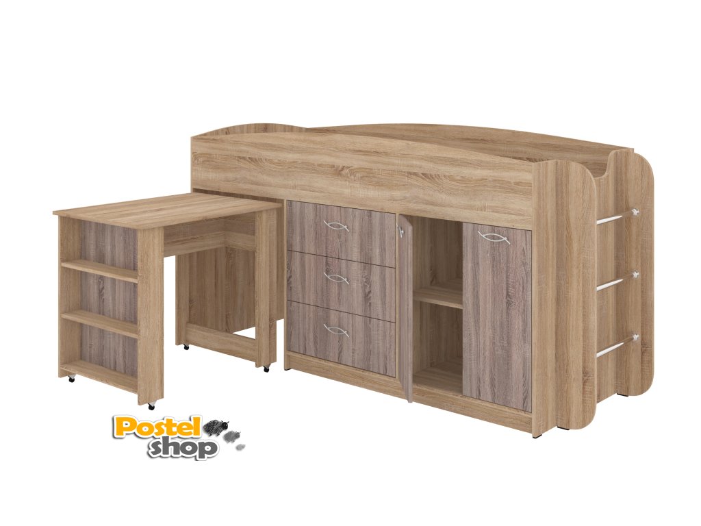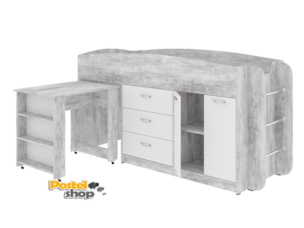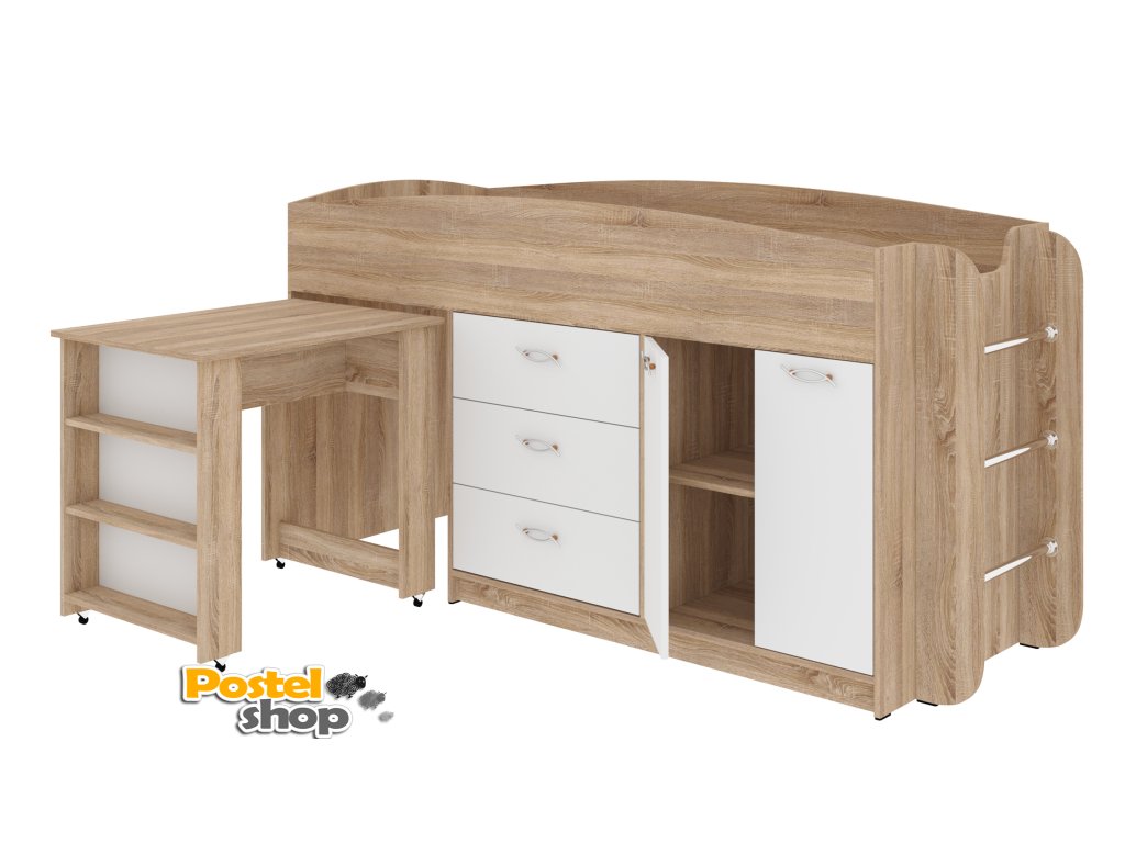 Patrová postel lamino Pola 80 x 190 cm, s psacím stolem a komodou