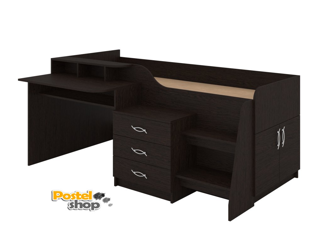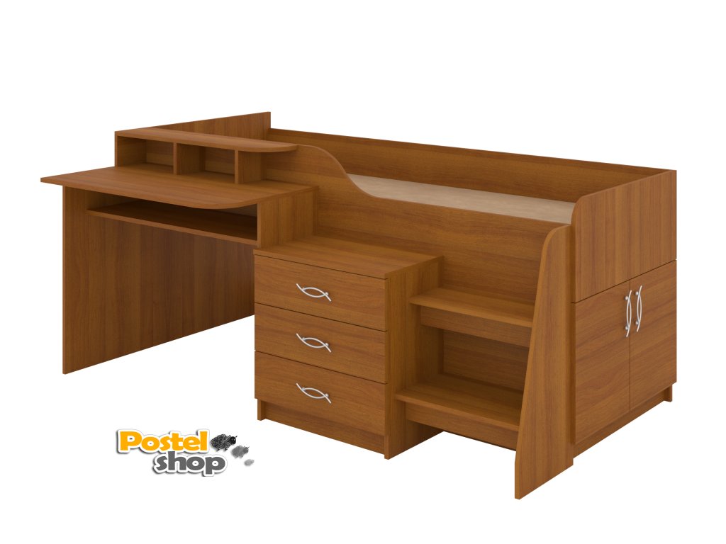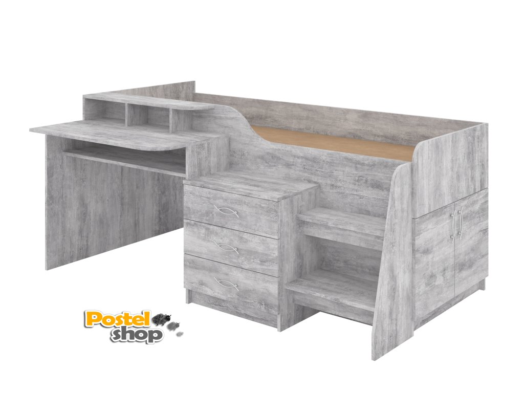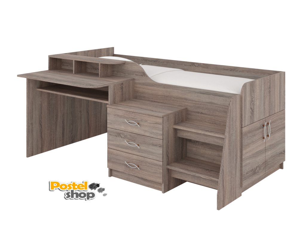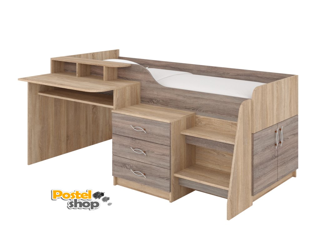 - Prostorově úsporná: Zvýšený design umožňuje uložení psacího stolu, komody a skříňky pod postelí, což šetří místo v pokoji.