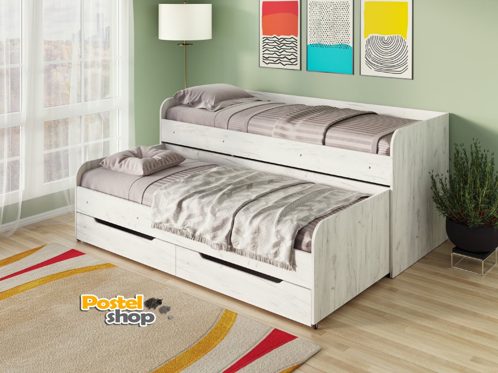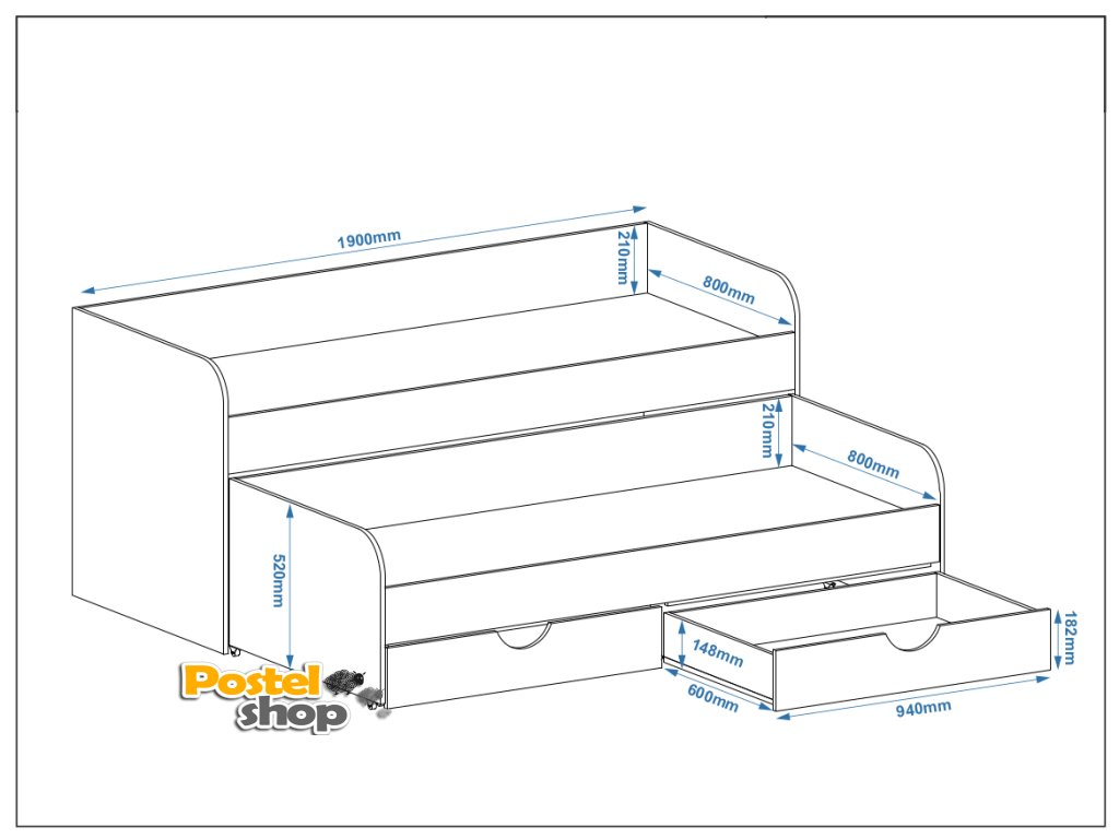 Dětská postel Sonya s výsuvnou přistýlkou a zásuvkami 190x80 cm