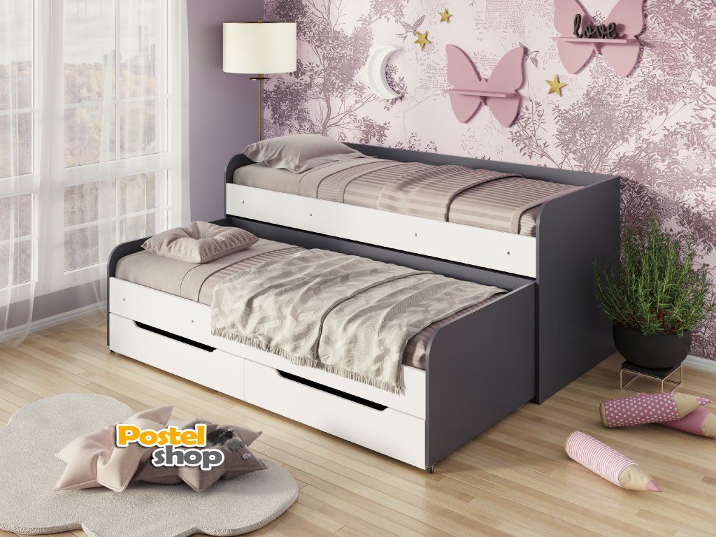 Zajistěte svým dětem kvalitní spánek a maximální pohodlí s dětskou postelí Sonya, která spojuje praktičnost a moderní design. Tato postel s výsuvnou přistýlkou (190x80 cm) a zásuvkami nabízí dostatek úložného prostoru a možnost přistýlky pro přespání návštěv. Perfektní volba do dětských pokojů, kde je každý centimetr cenný.