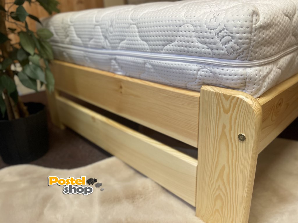 Jednoduché jednolůžko vyrobeno z masivní borovice o síle 25 - 28 mm, která zajišťuje vysokou stabilitu a odolnost.
