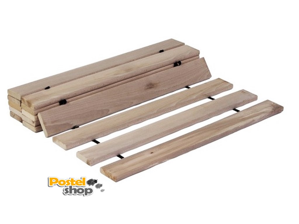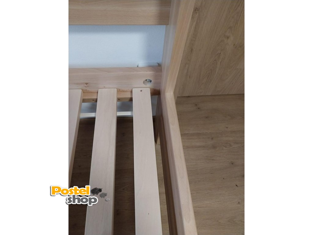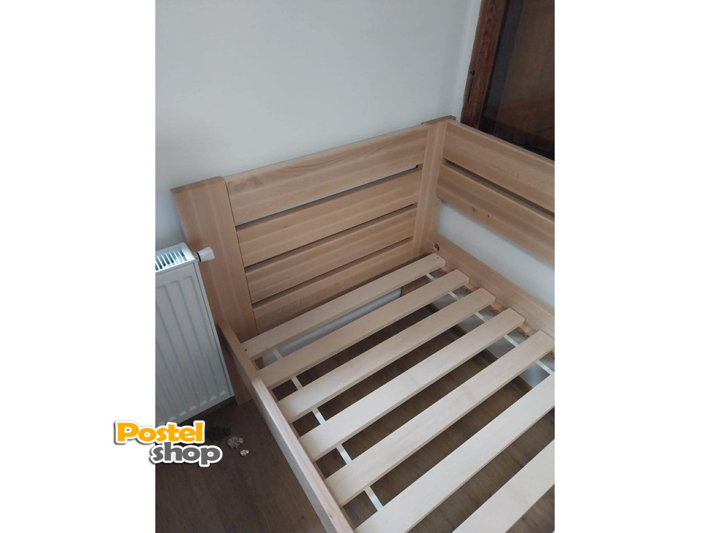 Postel je včetně zesíleného laťkového roštu z bukového masivu - v hodnotě 1290 Kč