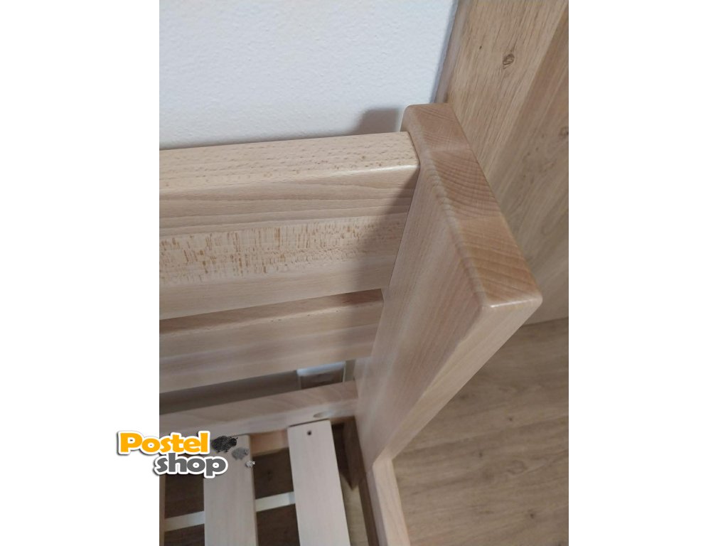 Zvýšené jednolůžko Matěj buk rohové masiv 3 cm s roštem - truhlářská výroba