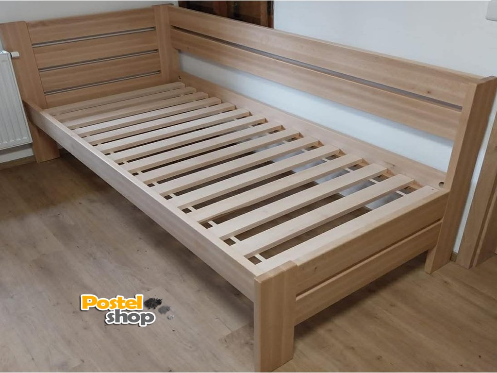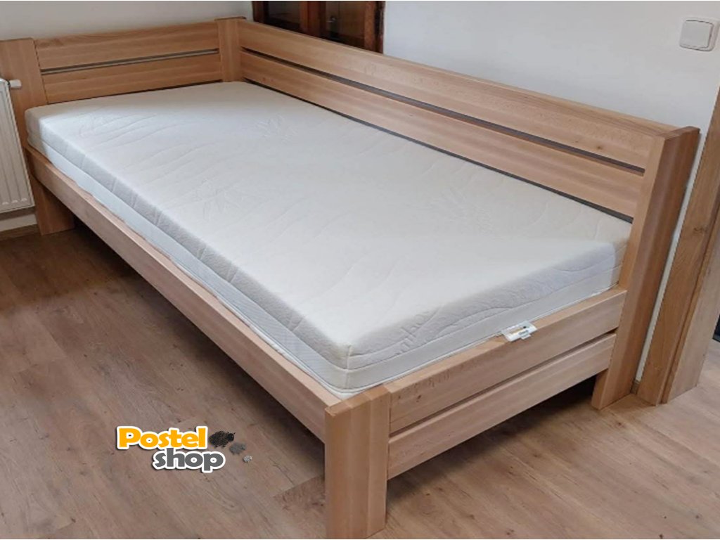 Kvalitní ROHOVÉ jednolůžko z bukového masivu o síle 3cm včetně laťkového zesíleného bukového roštu / na obrázku je lamelový!!!