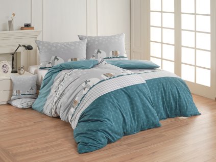 Povlak na polštář i na přikrývku zachycuje na vrchní straně motiv zvířátek, spodní stranu tvoří jemné zelenohnědé káro. Povlečení je vyrobeno ze 100% bavlny a je opatřeno praktickým zipovým uzávěrem.