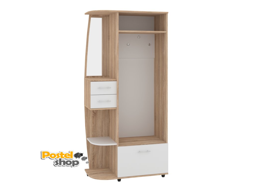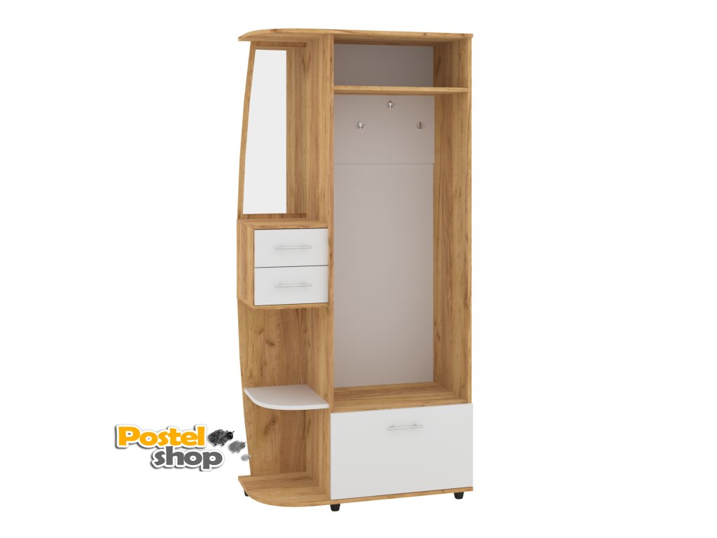 - Praktický design: Věšák, zásuvky a výklopný botník poskytují dostatek prostoru pro všechny vaše věci.