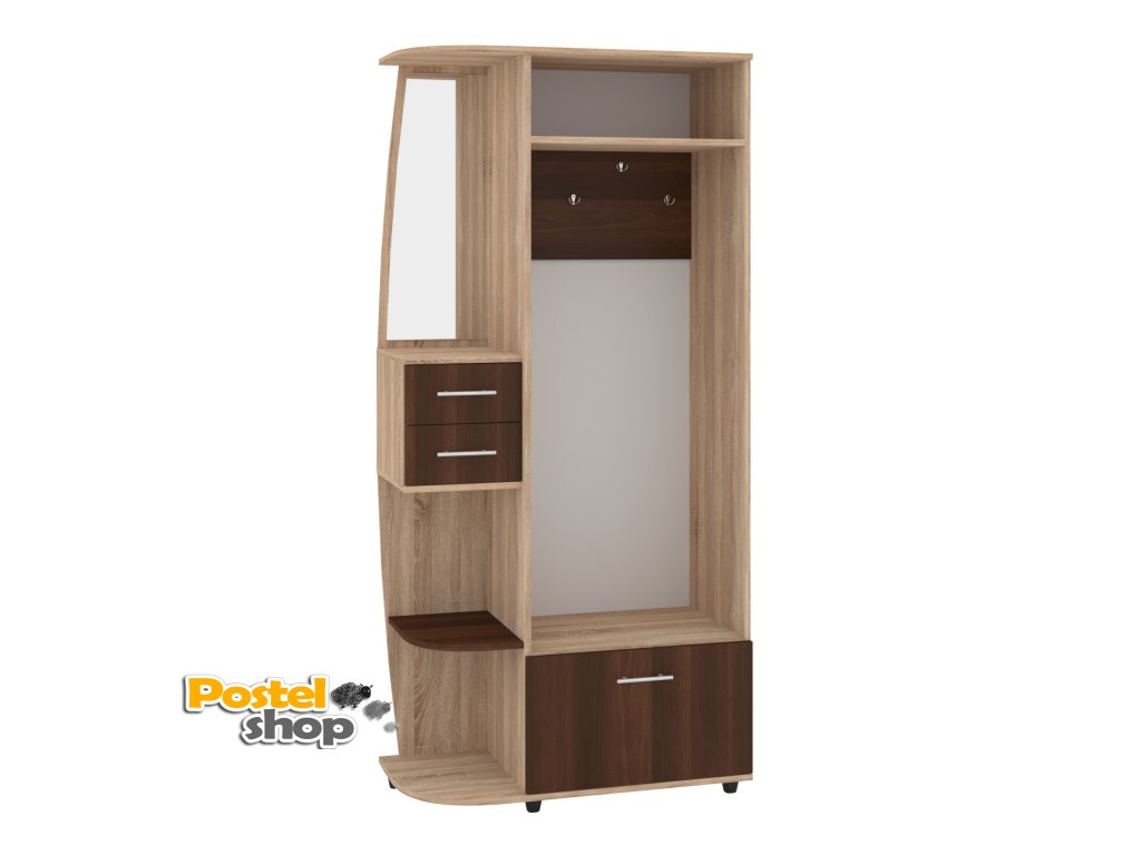 Předsíňová stěna BRIGANTINA je praktický a elegantní kus nábytku, který skvěle doplní vaši předsíň. S její pomocí udržíte váš prostor vždy uklizený a organizovaný. Tento model je vybaven věšákem pro pohodlné zavěšení kabátů a bund, zásuvkami pro uschování drobností, a výklopným botníkem pro snadné a efektivní uložení obuvi. Díky kompaktním rozměrům (výška 193 cm, šířka 90 cm, hloubka 42,6 cm) je ideální pro menší i středně velké předsíně, kde nezabírá mnoho místa, ale poskytuje dostatek úložného prostoru.