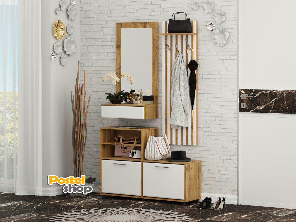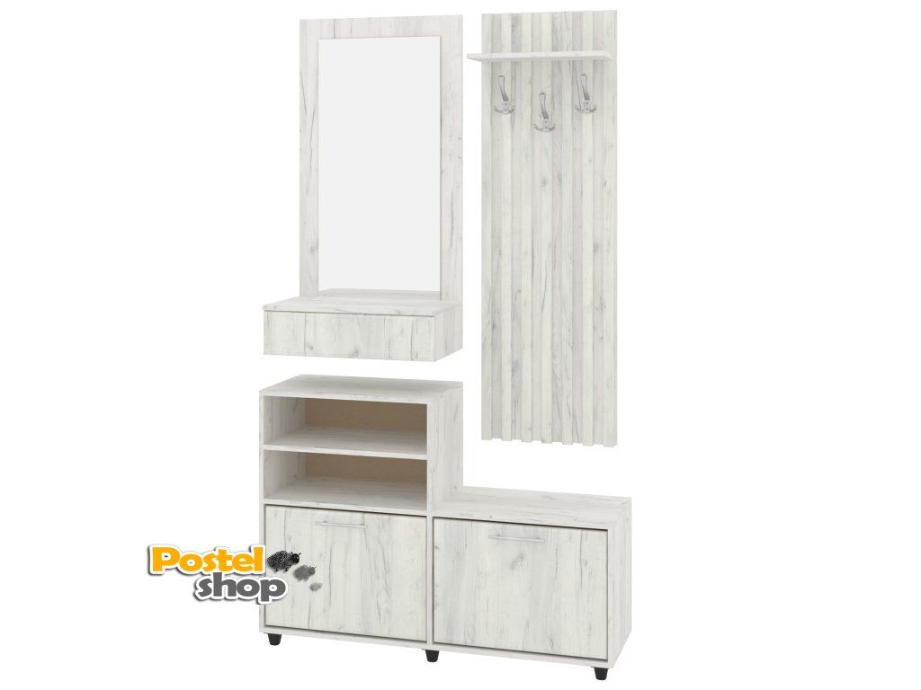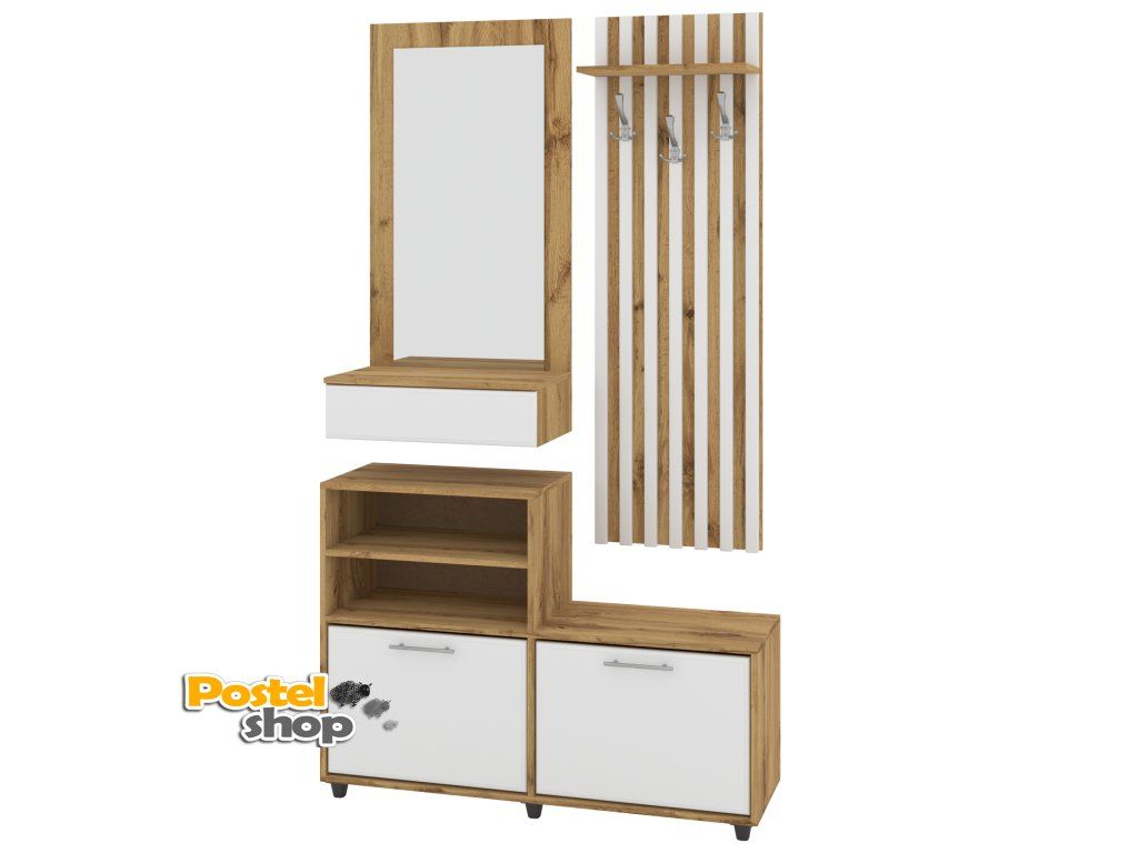 - Komplexní řešení pro předsíň: Kombinace zrcadla, věšáku, botníků, police a zásuvky poskytuje vše, co potřebujete k udržení pořádku ve vaší předsíni.