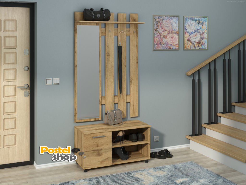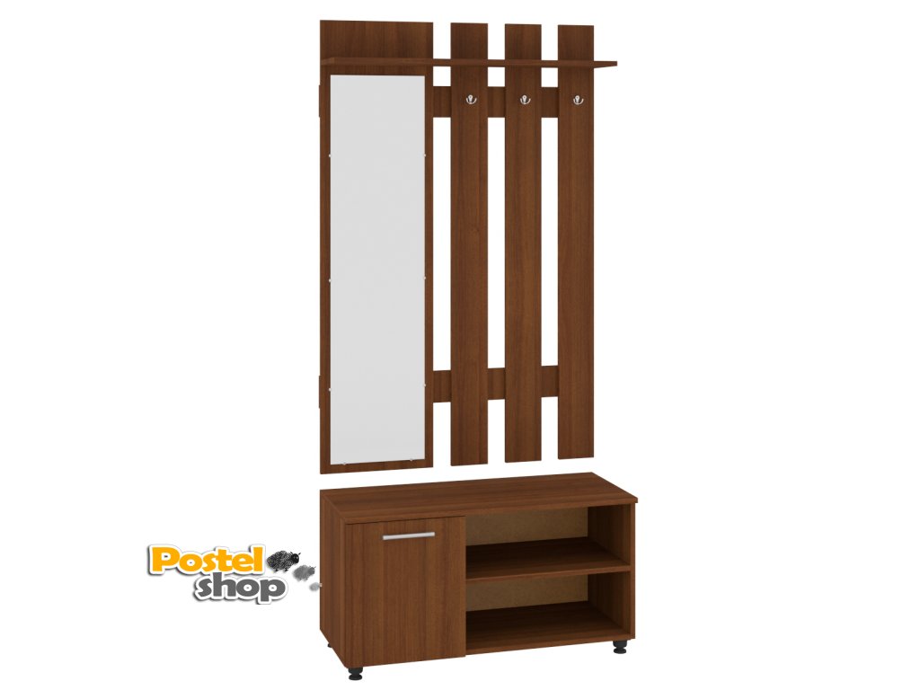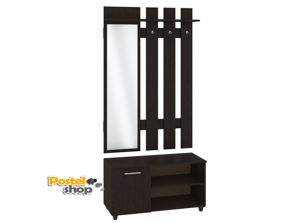 Tato předsíňová stěna je navržena tak, aby vám usnadnila každodenní rutiny – zrcadlo pro rychlou kontrolu vzhledu, věšák pro zavěšení kabátů a tašek, botník pro pohodlné uložení obuvi a skříňka pro ukládání drobností a klíčů. Vše je kvalitně zpracováno, což zaručuje dlouhou životnost a odolnost.