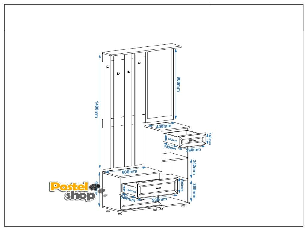 - Funkčnost: Zrcadlo, věšák, zásuvky a botník za dvířky – vše, co potřebujete pro uspořádání předsíně.