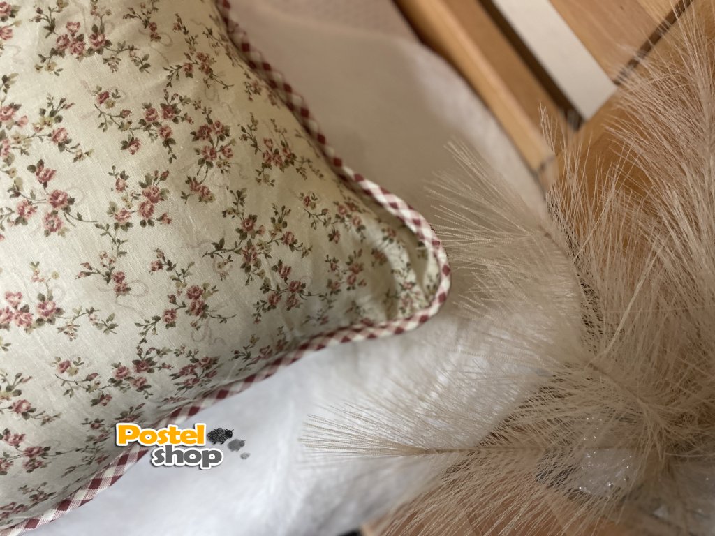 Povlak na polštář provence patchwork mašle červený lem 45x45cm