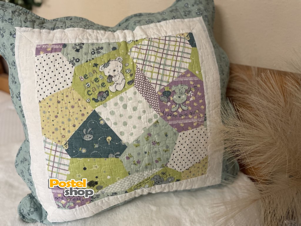 Povlak na polštář provence patchwork zeleno-modrý 45x45cm