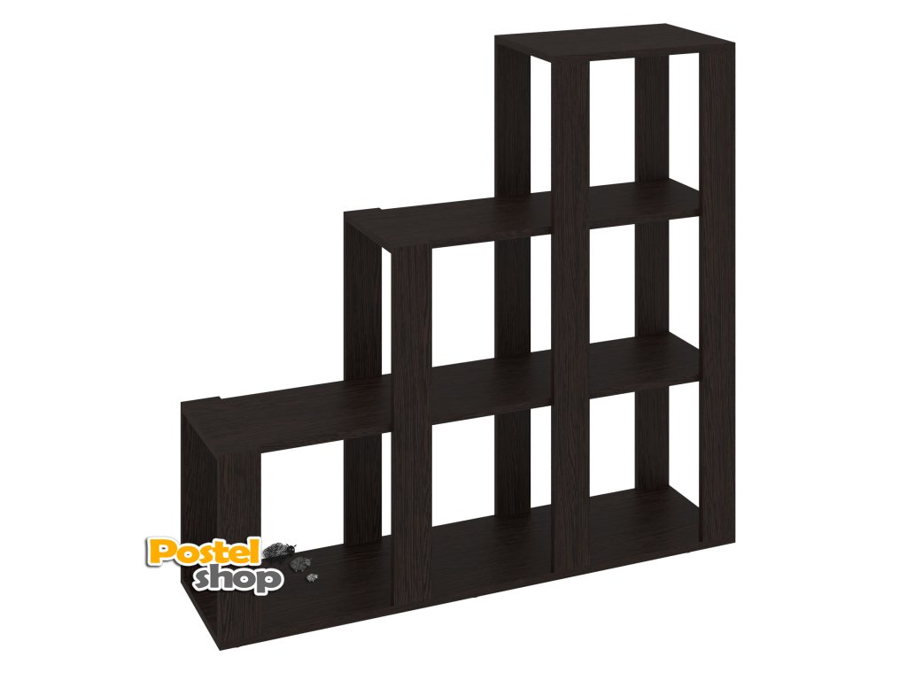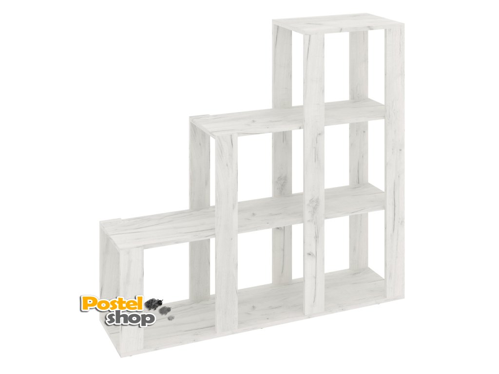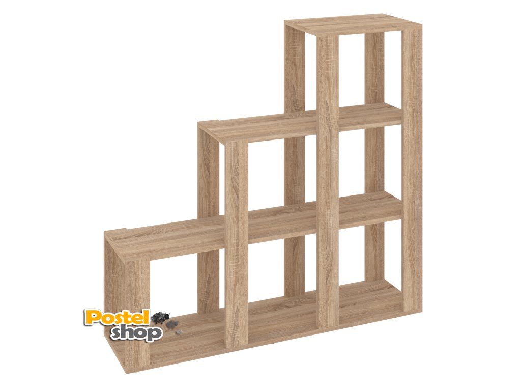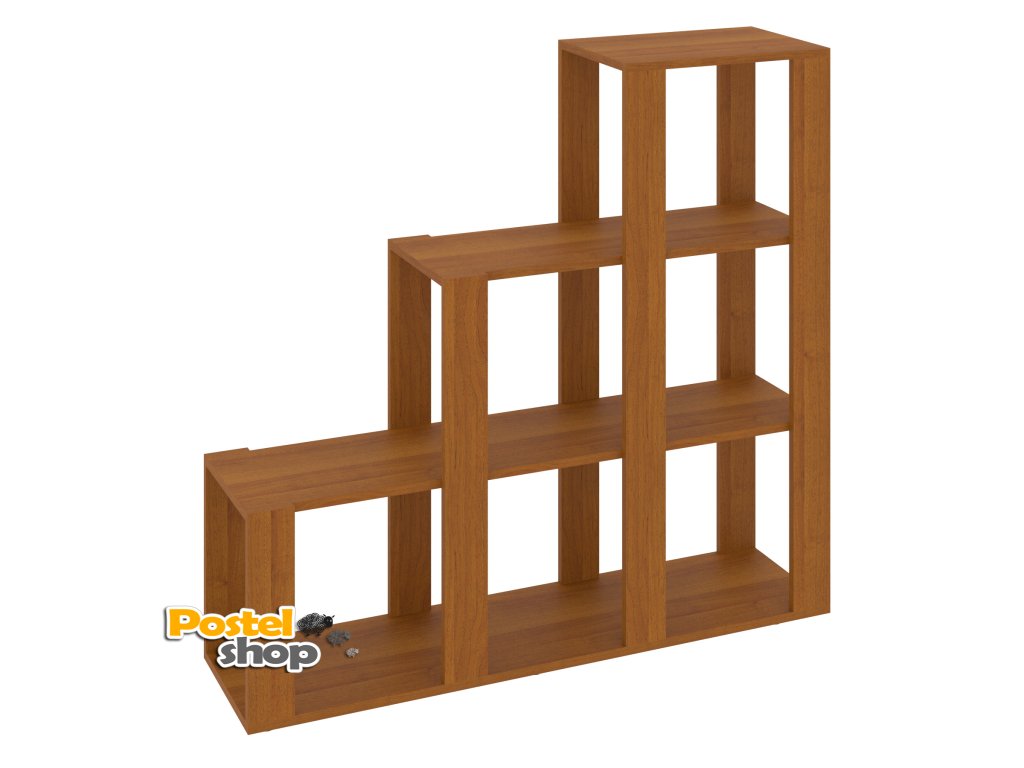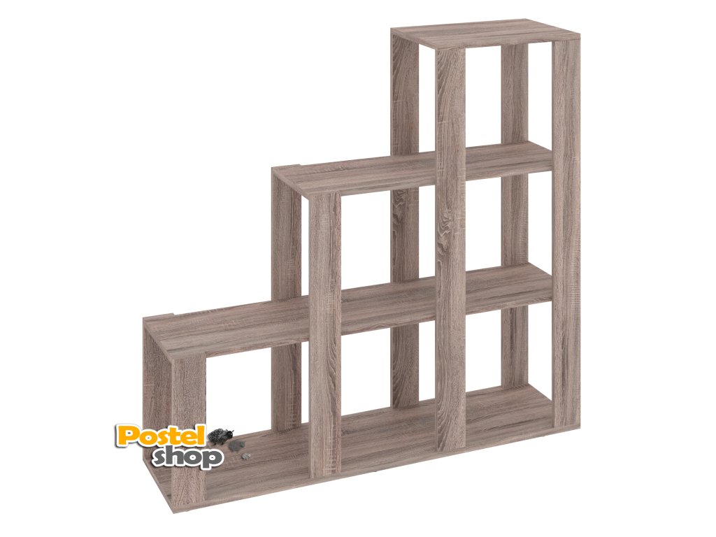 Policový regál ve tvaru schodů je skvělým řešením pro každou moderní domácnost. S rozměry 106,5 cm na výšku, 111,8 cm na šířku a hloubkou 29 cm poskytuje dostatek úložného prostoru pro knihy, dekorace nebo drobnosti, které si zaslouží být na očích. Jeho netradiční tvar schodů přidává místnosti dynamiku a šmrnc, a to jak v obývacím pokoji, pracovně, tak i v chodbě.