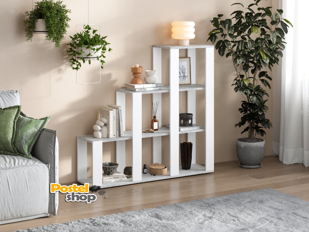 - Stylový design: Regál ve tvaru schodů přináší do vašeho interiéru moderní a kreativní prvek, který oživí každý prostor.