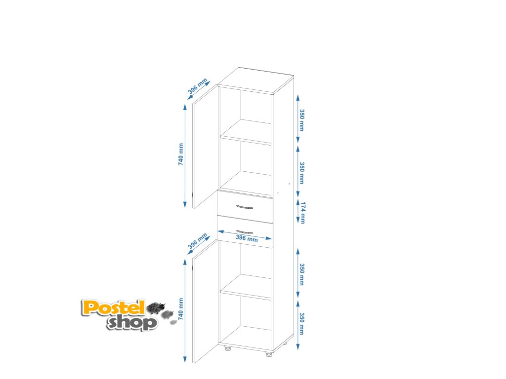 Hledáte elegantní a praktický regál pro vaši kancelář, obývací pokoj či pracovnu? Policový regál P-06 s dvířky a zásuvkami je ideální volbou pro každého, kdo ocení funkčnost, kvalitu a moderní design. Tento regál o výšce 189,5 cm, šířce 40 cm a hloubce 38 cm nabízí dostatek úložného prostoru, který snadno zapadne do jakéhokoliv interiéru.
