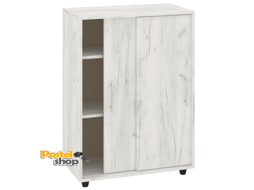 S posuvnými dvířky, které šetří prostor, máte snadný přístup k uloženým věcem, a zároveň zajišťují úhlednost a pořádek. Regál je vyroben z kvalitních materiálů, což zajišťuje jeho dlouhou životnost a stabilitu.