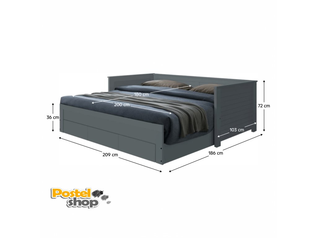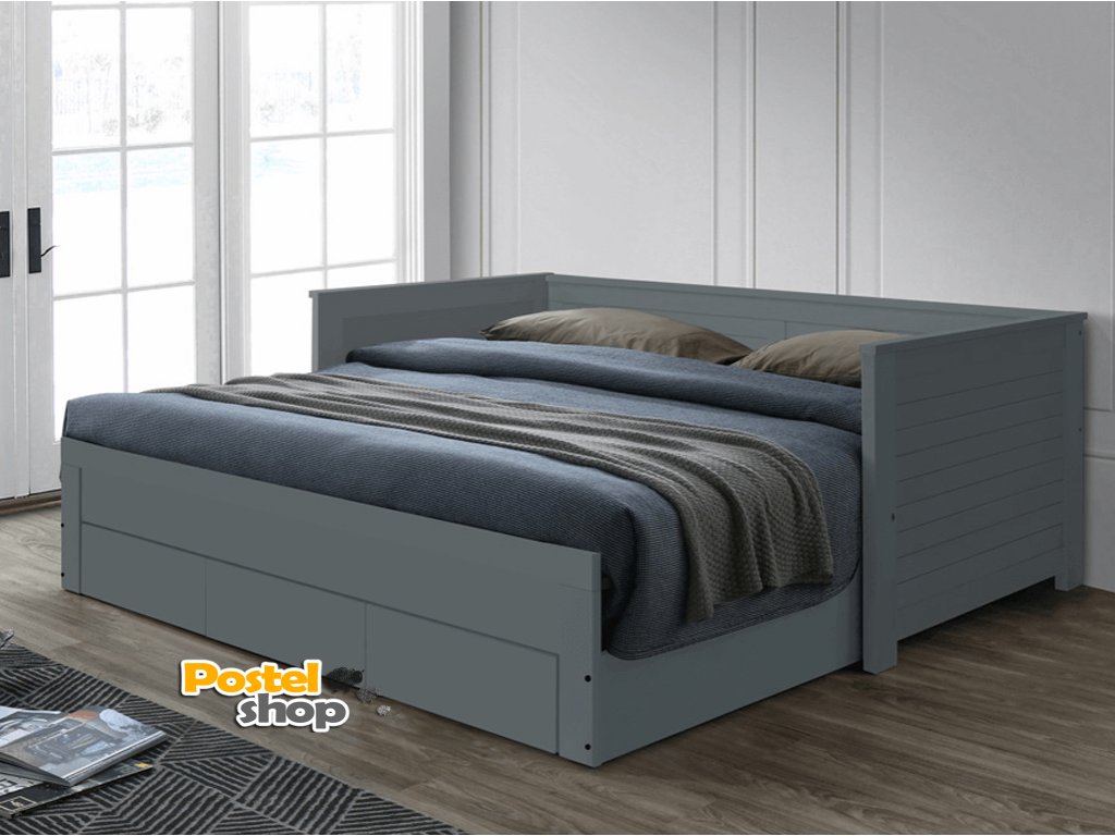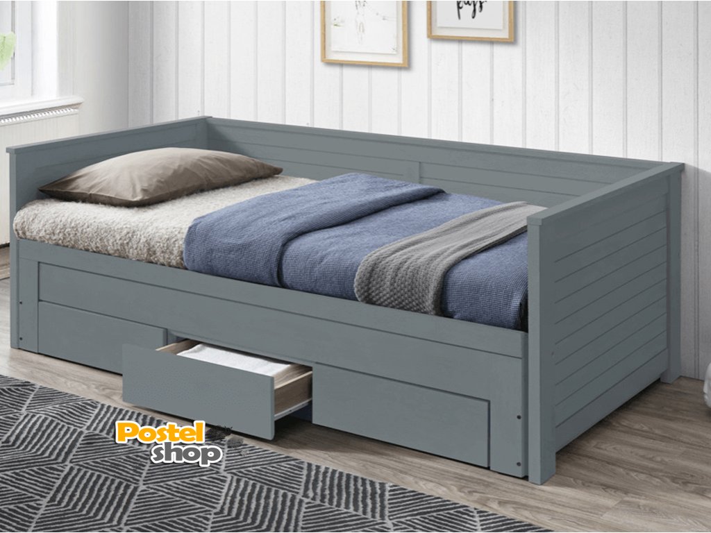 Rozkládací postel masiv se třemi zásuvkami šedá barva 95x200cm -180x200cm