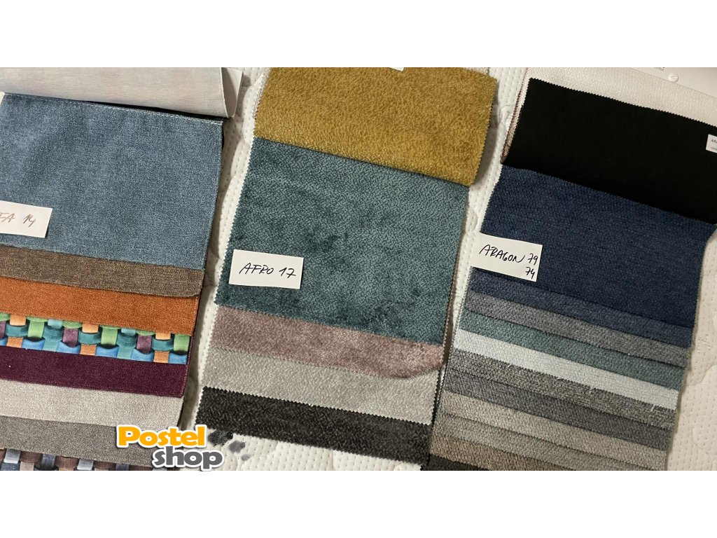 Velký výběr potahových látek možnost výběru látky ze vzorníku na naší prodejně v Milevsku .