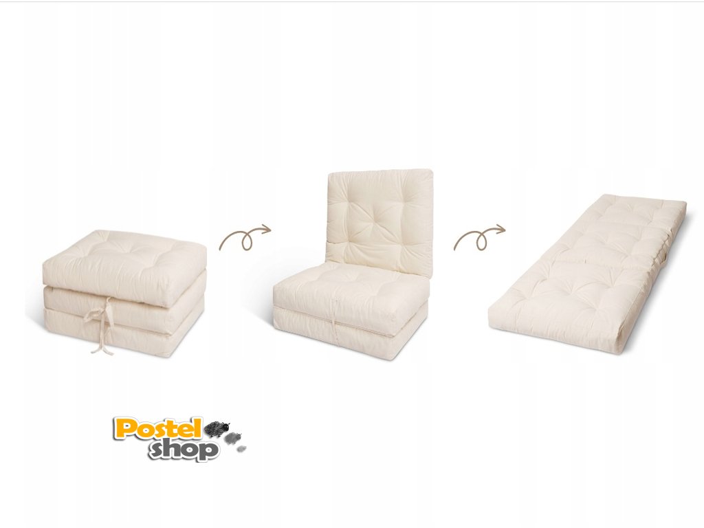 Po složení a sbalení do pouzdra se futon stane praktickým taburetem.