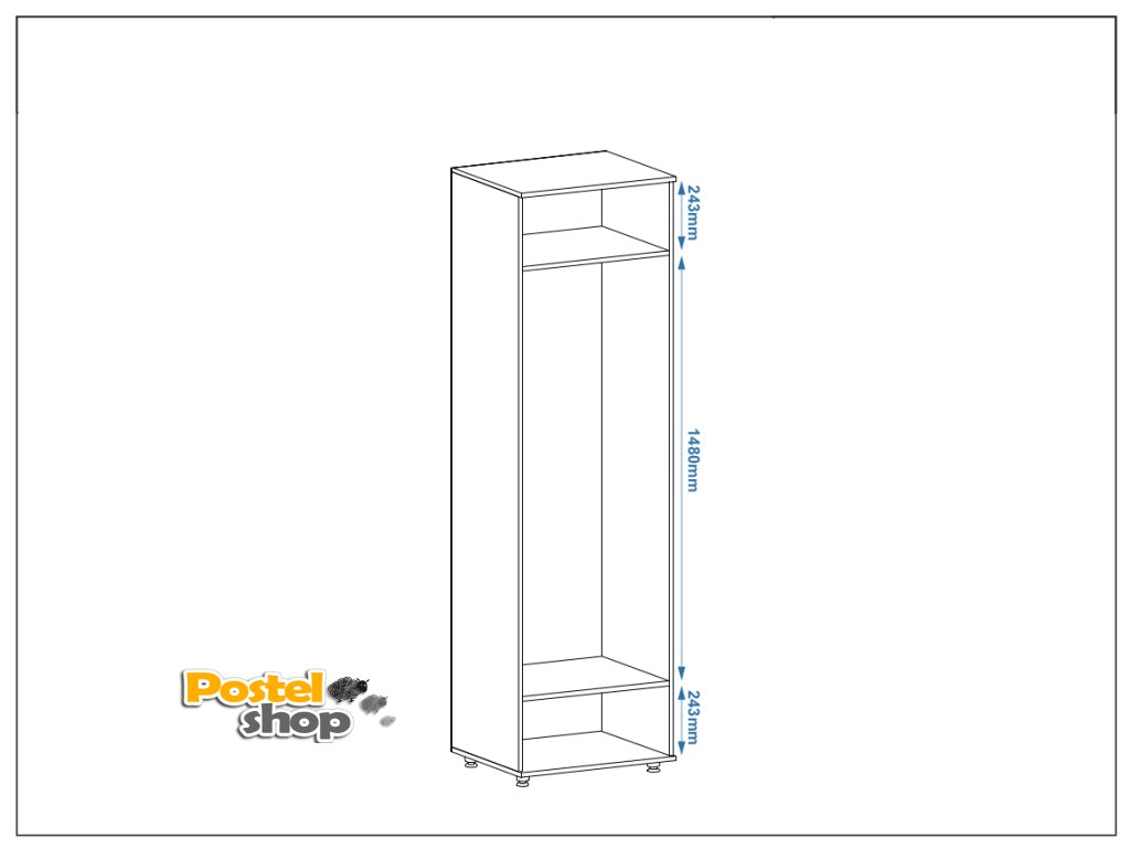 - Praktické uspořádání: Skříň disponuje šatní tyčí pro zavěšení oblečení a policemi v horní a dolní části pro uložení dalších věcí, což poskytuje optimální kombinaci pro každodenní potřebu.