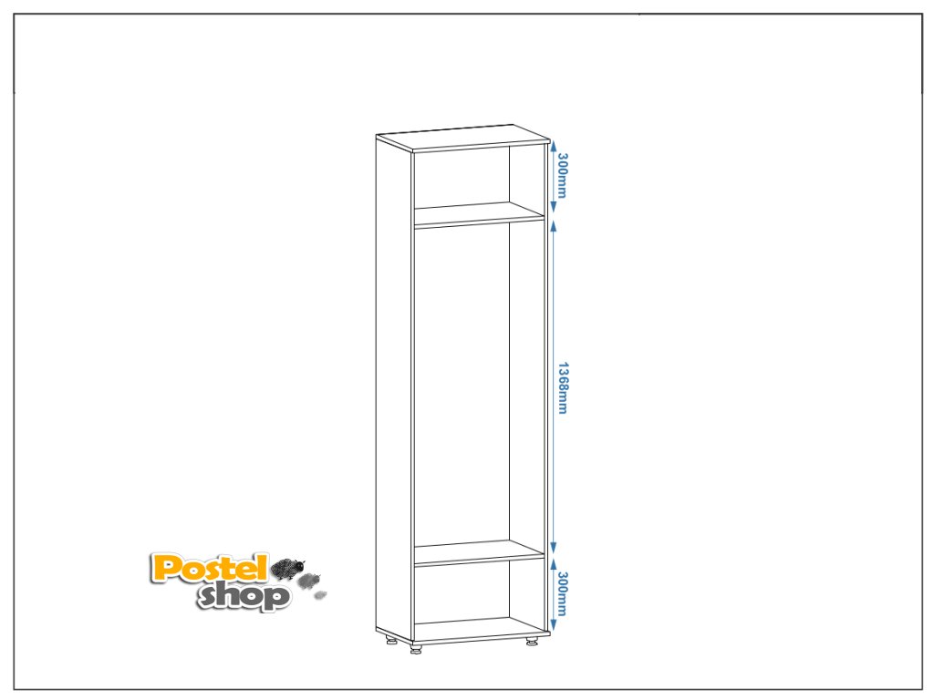 Skříň je navržena tak, aby byla nejen funkční, ale také elegantní. Moderní design v kombinaci s kvalitním materiálem zajišťuje dlouhou životnost a odolnost. Výsuvný mechanismus v šatní části umožňuje snadný přístup k vašim věcem, zatímco police poskytují přehledné uložení menších předmětů.