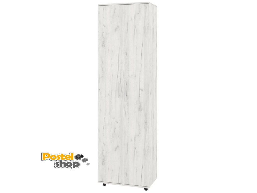 Dvoudveřová šatní skříň VERNISAZ s výsuvem a policemi – moderní a praktické řešení pro vaši předsíň