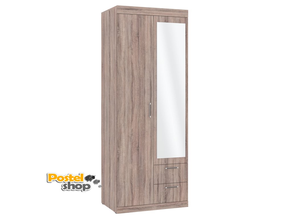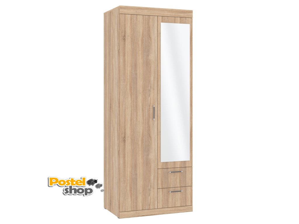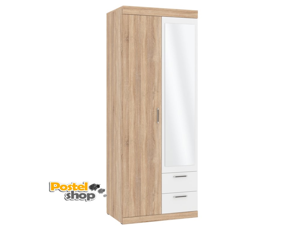 Tato moderní šatní skříň Monika s elegantním zrcadlem je ideální volbou pro každý interiér, který potřebuje funkční a zároveň stylové úložné řešení. Skříň nabízí dostatek prostoru pro uložení oblečení a dalších osobních věcí díky promyšlenému vnitřnímu uspořádání.