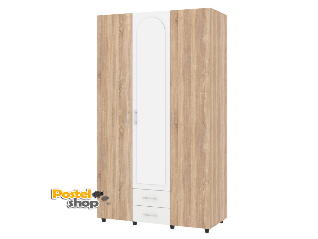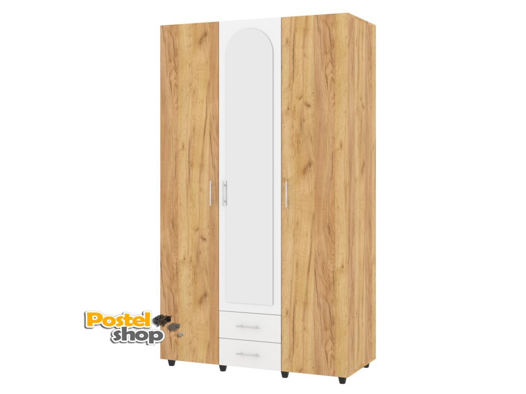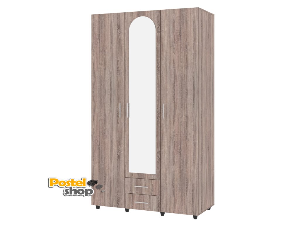 Tato elegantní třídveřová šatní skříň s zrcadlem a praktickými zásuvkami je ideálním řešením pro každou ložnici či předsíň. Díky svému modernímu designu a funkčnímu vnitřnímu rozdělení skvěle kombinuje styl s praktičností. Skříň je součástí populární kolekce MILANA, která je známá svou kvalitou a vkusným provedením.