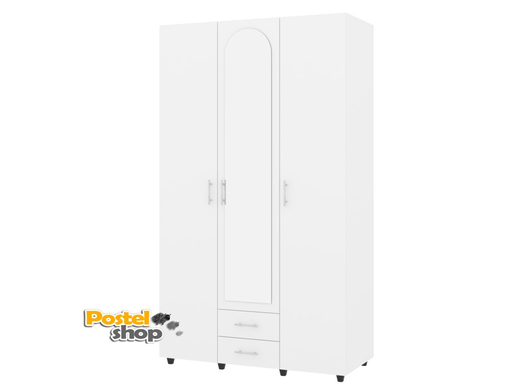 - Praktické vnitřní uspořádání: 1/3 skříně tvoří policová část se 4 policemi ( za zrdcadlem), ideální pro uložení oděvů, doplňků nebo obuvi. Zbytek skříně (2/3) je vybaven šatní tyčí pro pověšení kabátů, šatů či košil.