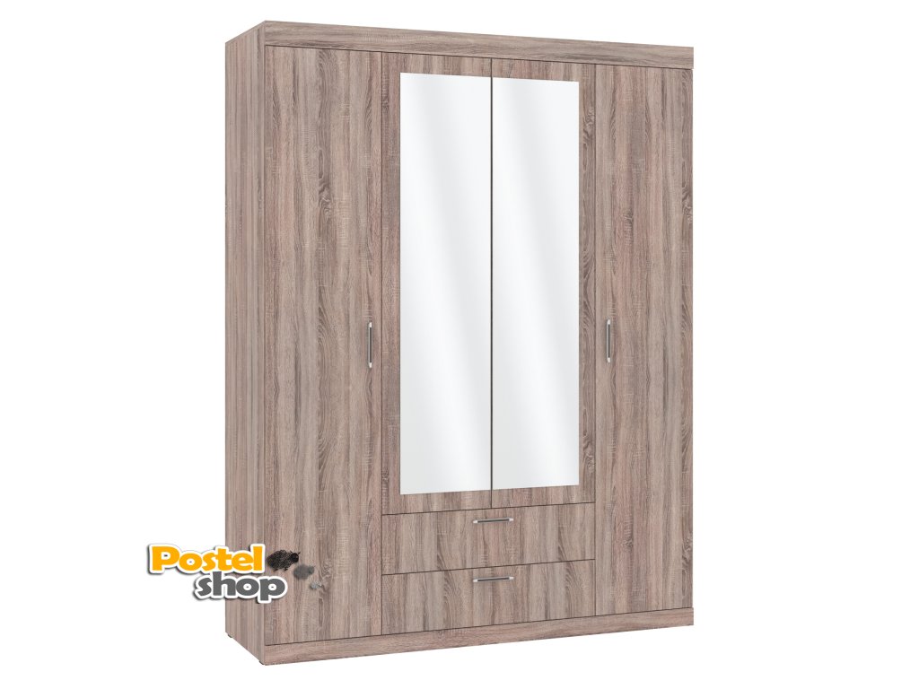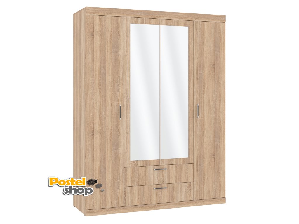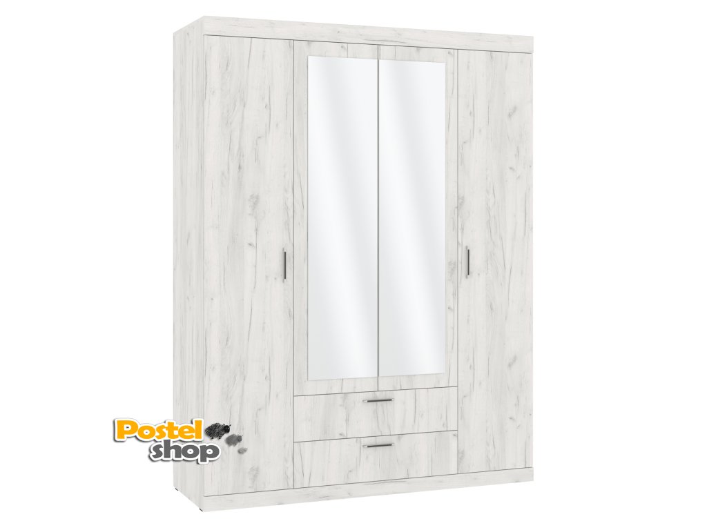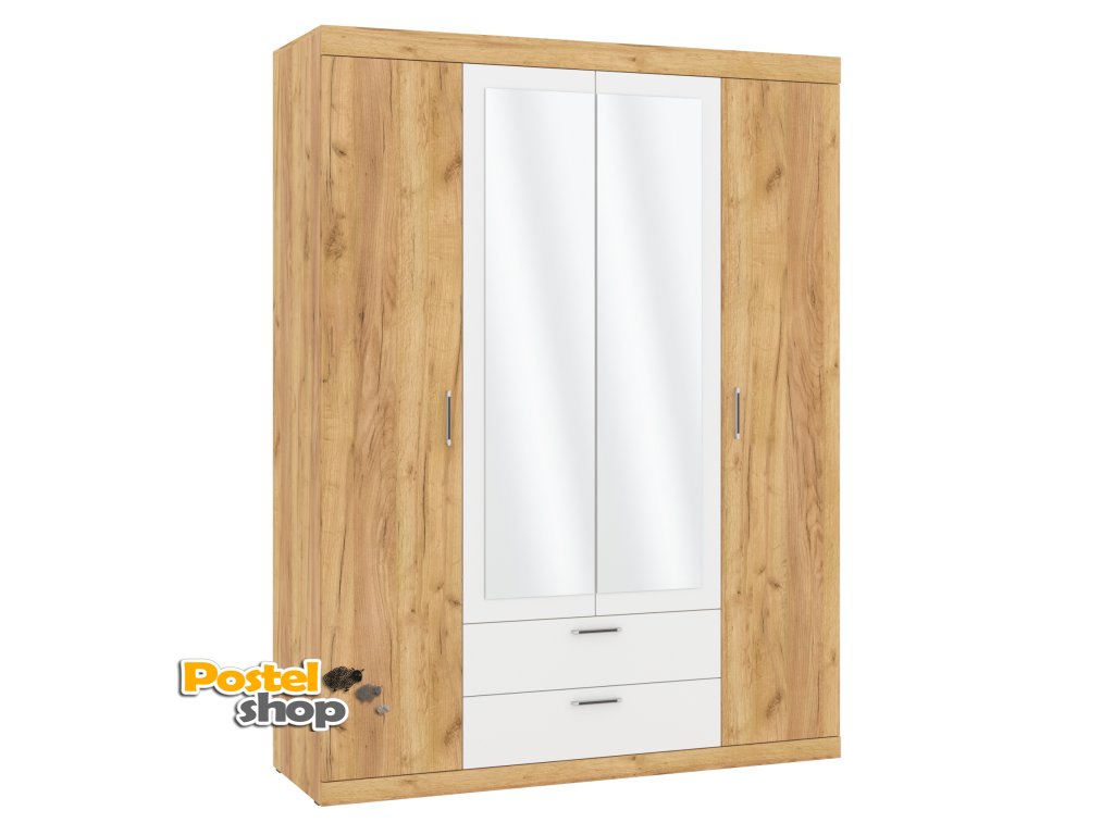 - Zrcadlo: Skříň je vybavena praktickým zrcadlem na dveřích, což vám ušetří místo v ložnici a poskytne pohodlí při každodenním oblékání.