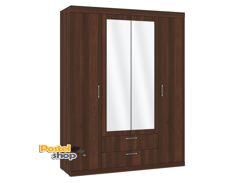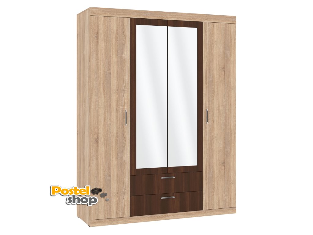 Šatní skříň IV. Monika je perfektní volbou pro ty, kteří hledají praktické a elegantní řešení pro svůj interiér. S elegantním designem a moderním zrcadlem nabízí tato skříň nejen dostatek úložného prostoru, ale i prostor pro každodenní použití, a to v kompaktních rozměrech. Skříň je rozdělena na dvě části – jednu s policemi pro přehledné uložení oblečení a druhou s šatní tyčí pro zavěšení vašich kabátů, košil nebo šatů.