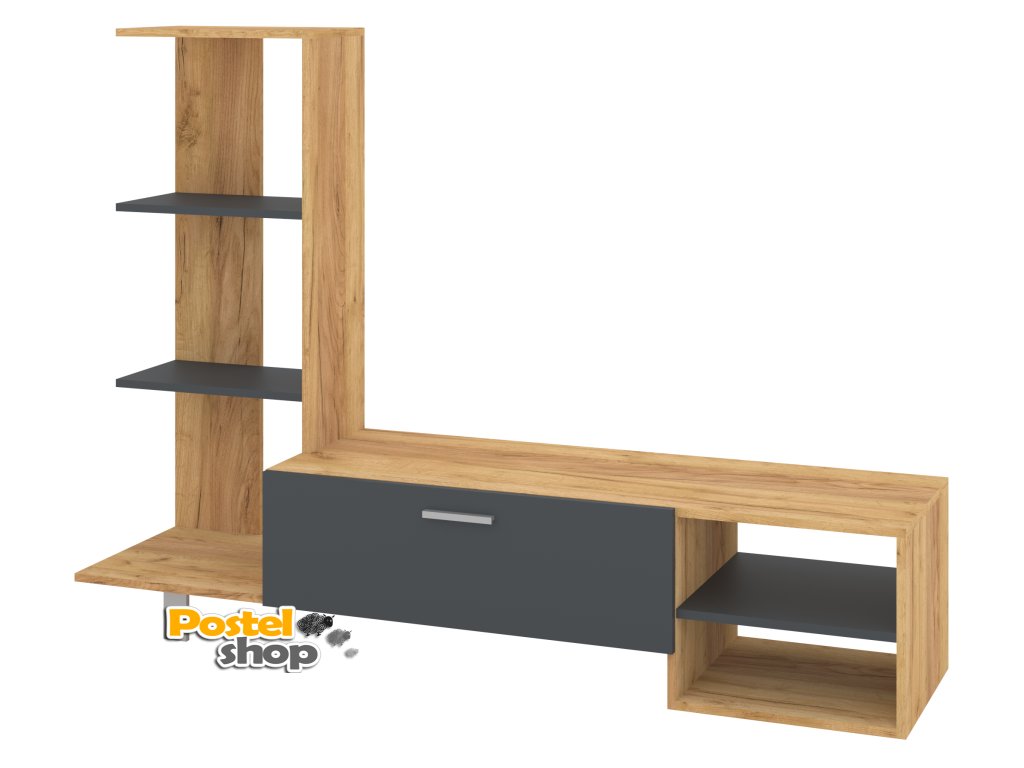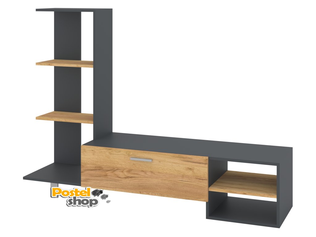 Televizní stolek Dakar s regálem, policí a výklopnými dvířky – Styl a funkčnost pro váš domov
