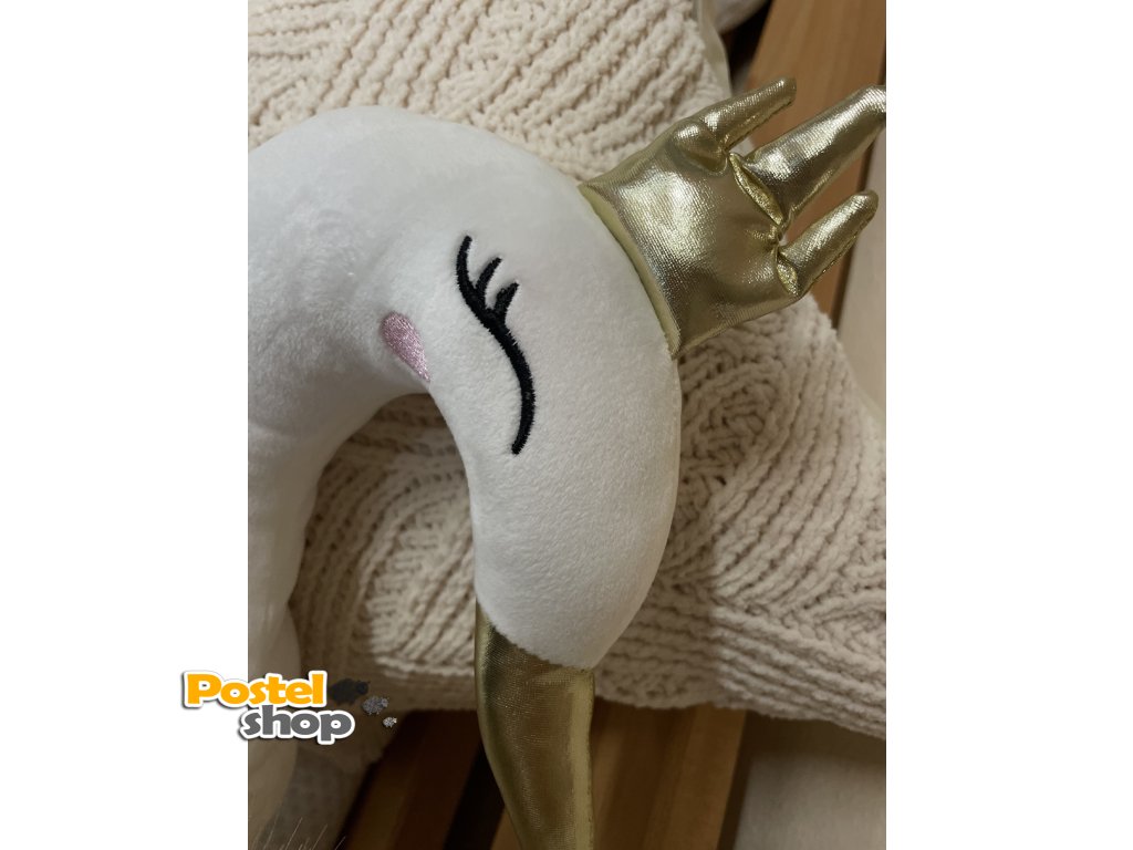 Labuť má krásné propracované detaily, zlatou korunku a zobáček.