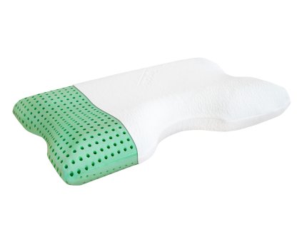 Anatomicky tvarovaný pro přirozenou polohu páteře při spaní. Střední část polštáře je zónově optimalizovaná pro spánek na zádech a boční části pak pro spaní na boku.