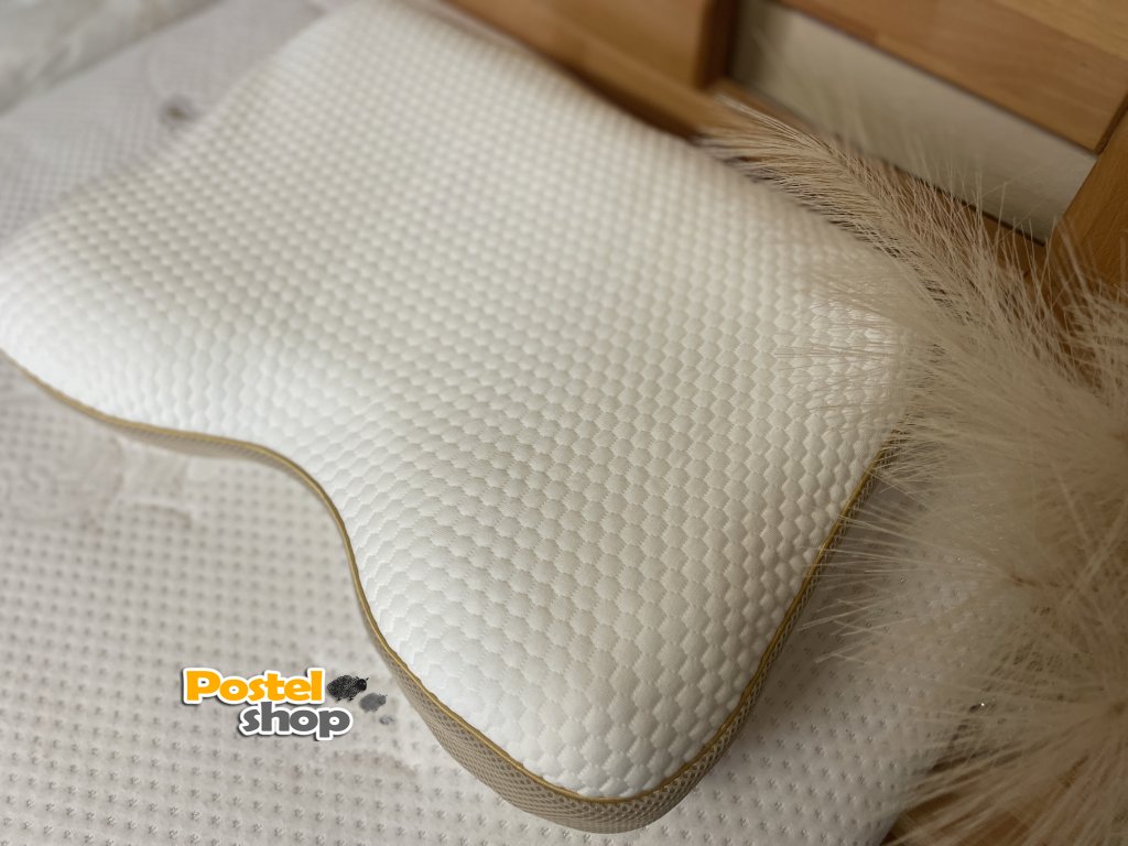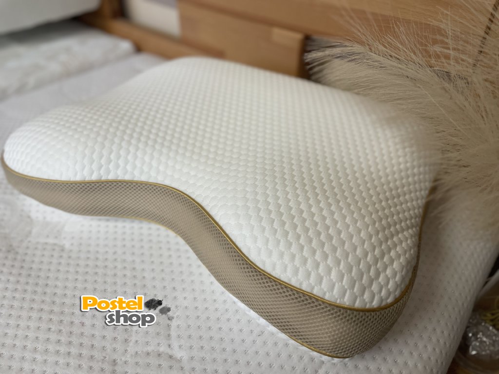 Zdravotní polštář poskytující jedinečnou oporu páteře . Tužší paměťová pěna se tvaruje přesně podle tvaru vaší krční páteře, hlavy a poskytuje tak šíjovým a ramenným svalům dokonalou oporu a uvolnění .64x35cm /v 11/ 8cm